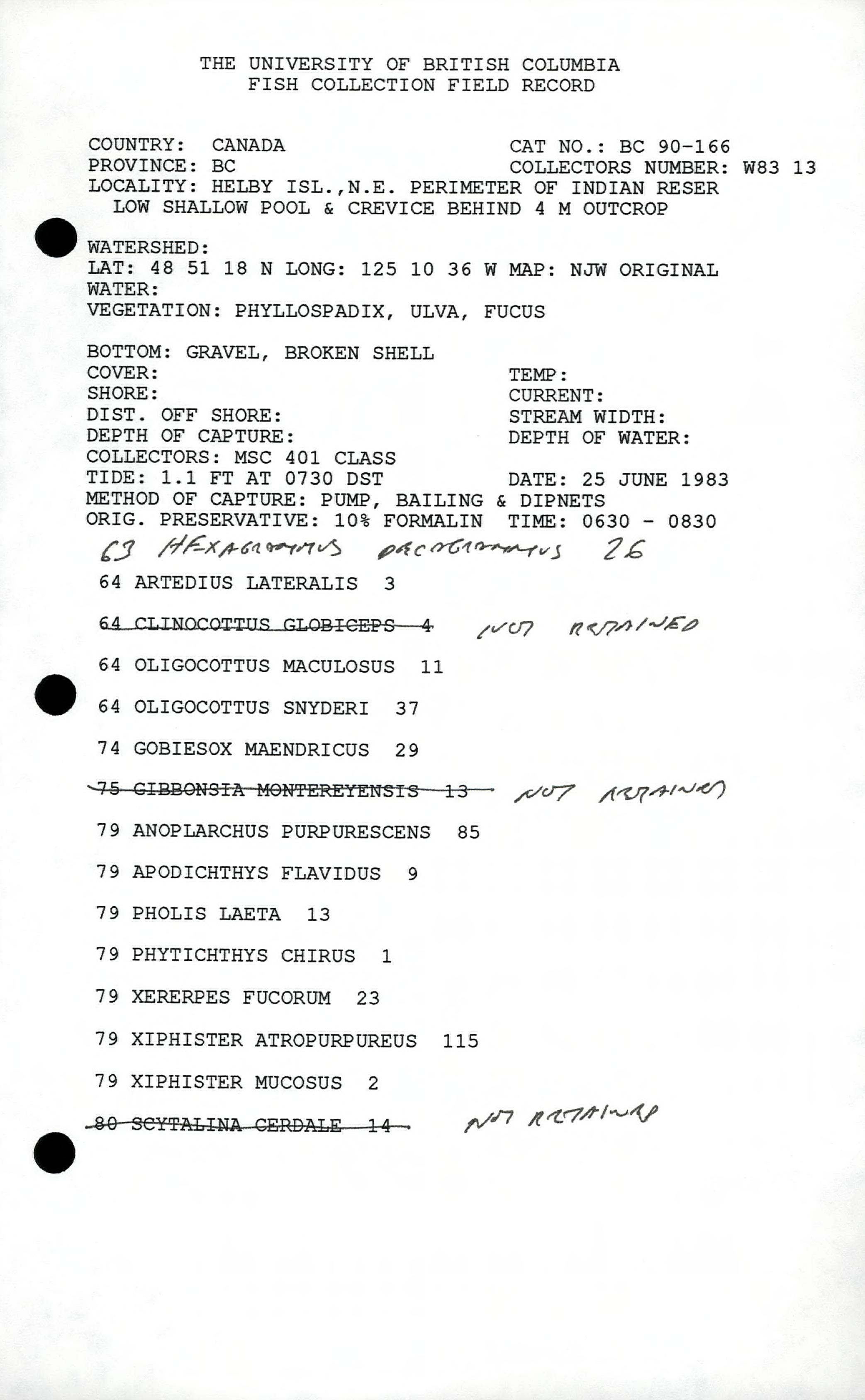 - UBC Institute of Fisheries Field Record B.C. 90-166