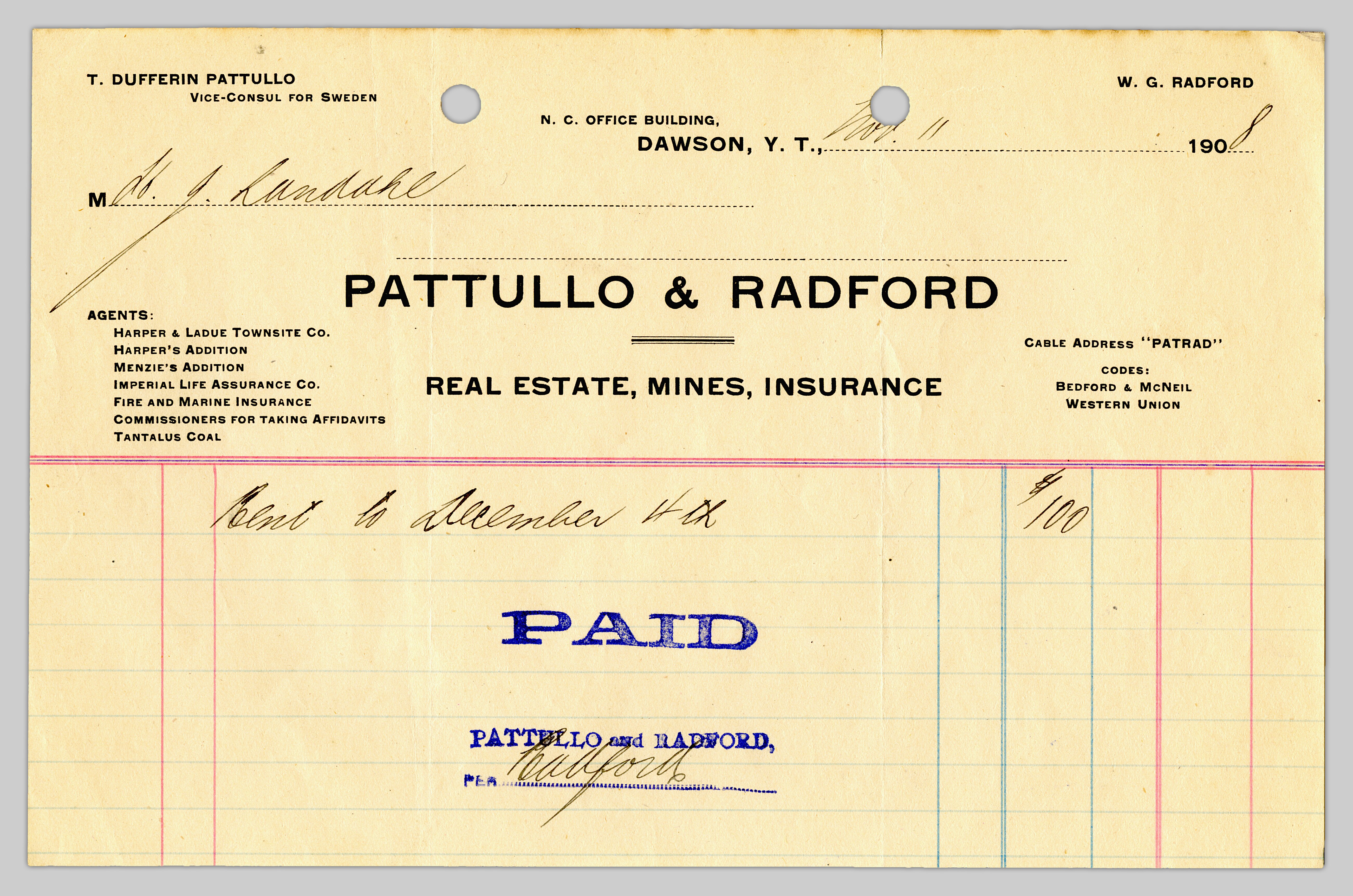 [Invoice from Pattullo & Radford, Real Estate, Mines, Insurance] Pattullo and Radford