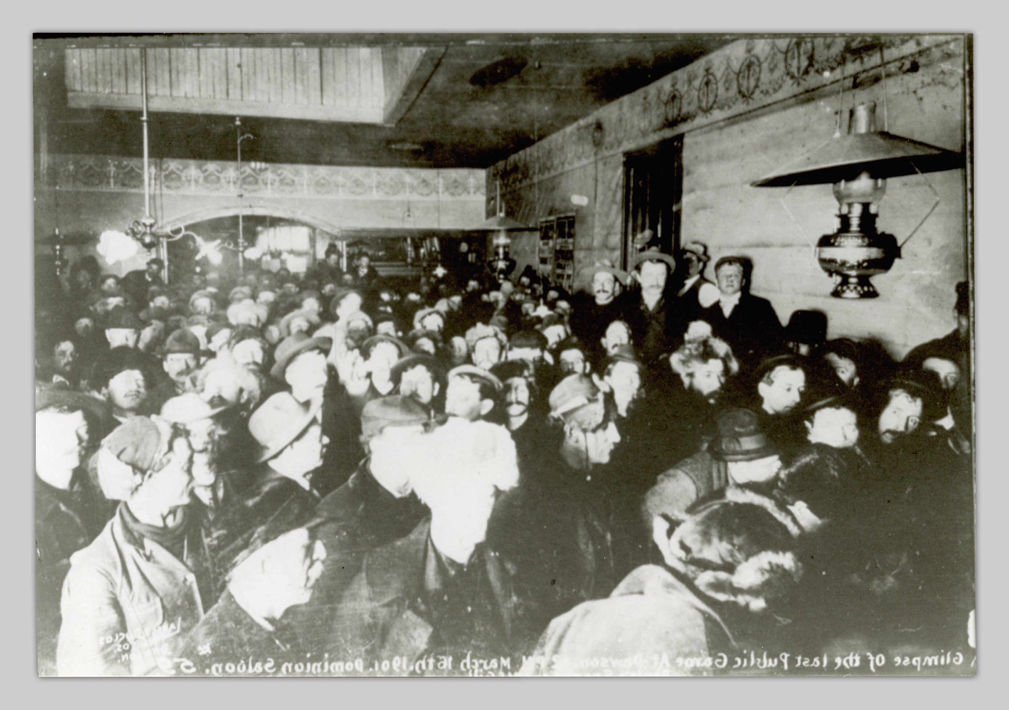 Glimpse of the last public game at Dawson, 12 P.M. March 16th 1901. Dominion Saloon Larss and Duclos