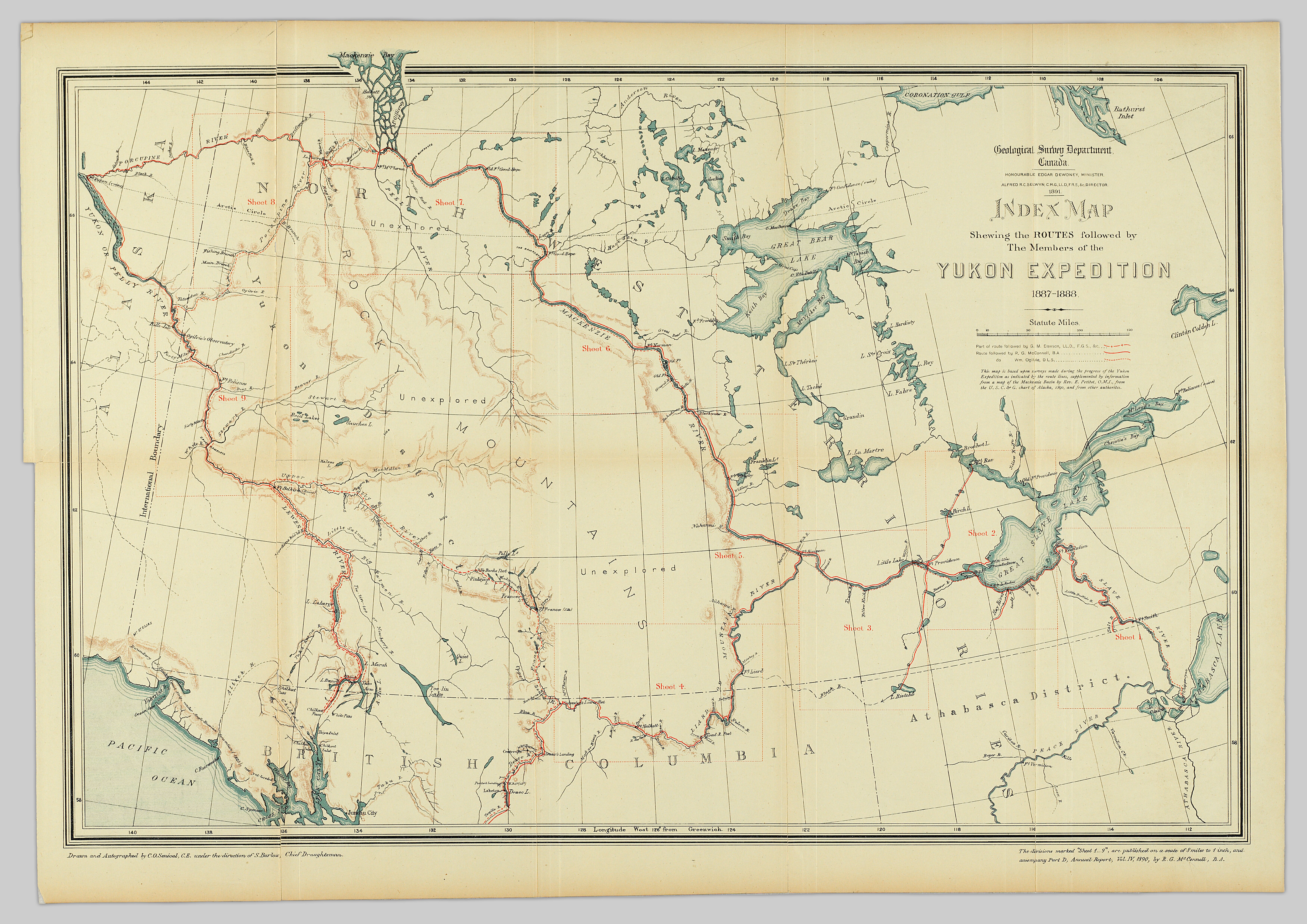 Index map shewing the routes followed by the members of the Yukon Expedition 1887-1888 Senécal, C. O. (Clovis Omer)